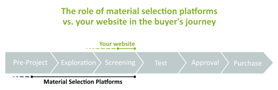 Pre-project: Material specifiers become aware of a challenge: a new regulation, a performance gap, a customer requirement. They start looking for solutions.